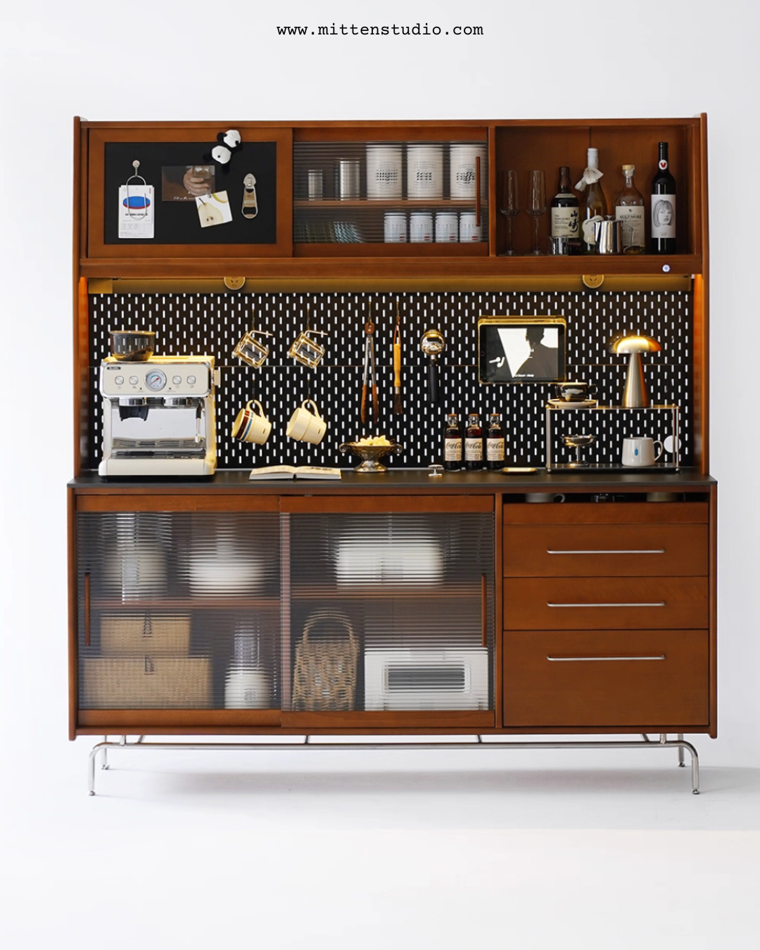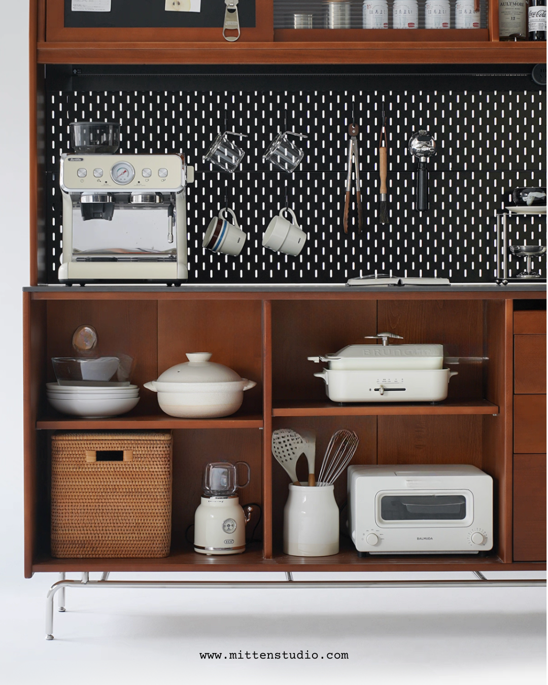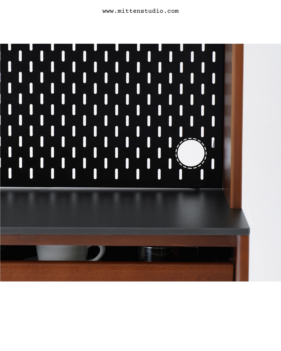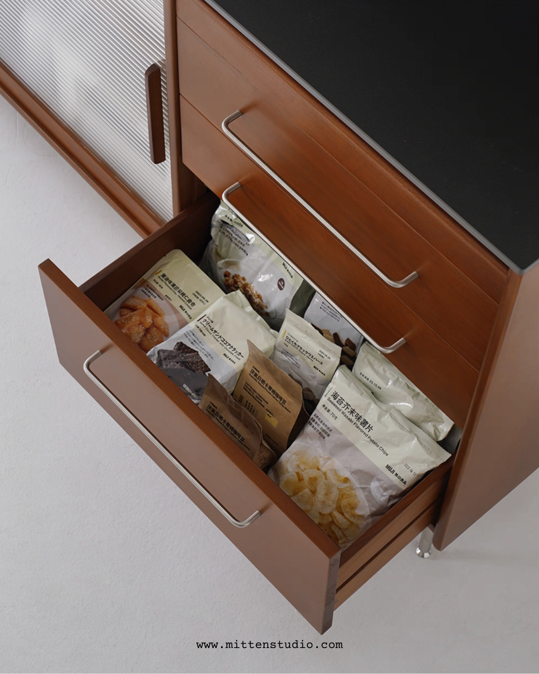 ตัวตู้ทำจากไม้แท้ มีชุดมือจับ ราวแขวนและขาสแตนเลสคุณภาพสูงเสริมสอดรับกับไม้โทนสีเข้มเป็นอย่างดี ความสูงของตู้และระดับของเคาน์เตอร์ช่วยให้ผู้ใช้งานทำงานต่างๆบนเคาน์เตอร์ได้อย่างไม่เมื่อยล้า นอกจากนี้ยังมีแผง Multifuntion board และชุดตู้เก็บของที่แบ่งแยกพื้นที่เก็บของไว้เป็นอย่างดี ผู้ใช้สามารถเก็บจัดระเบียบสายไฟได้อย่างง่ายดายด้วยช่องลอดสายทั้งช่วงกลางและด้านล่างของตู้