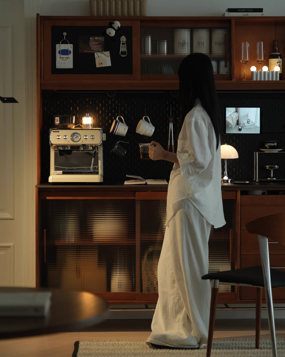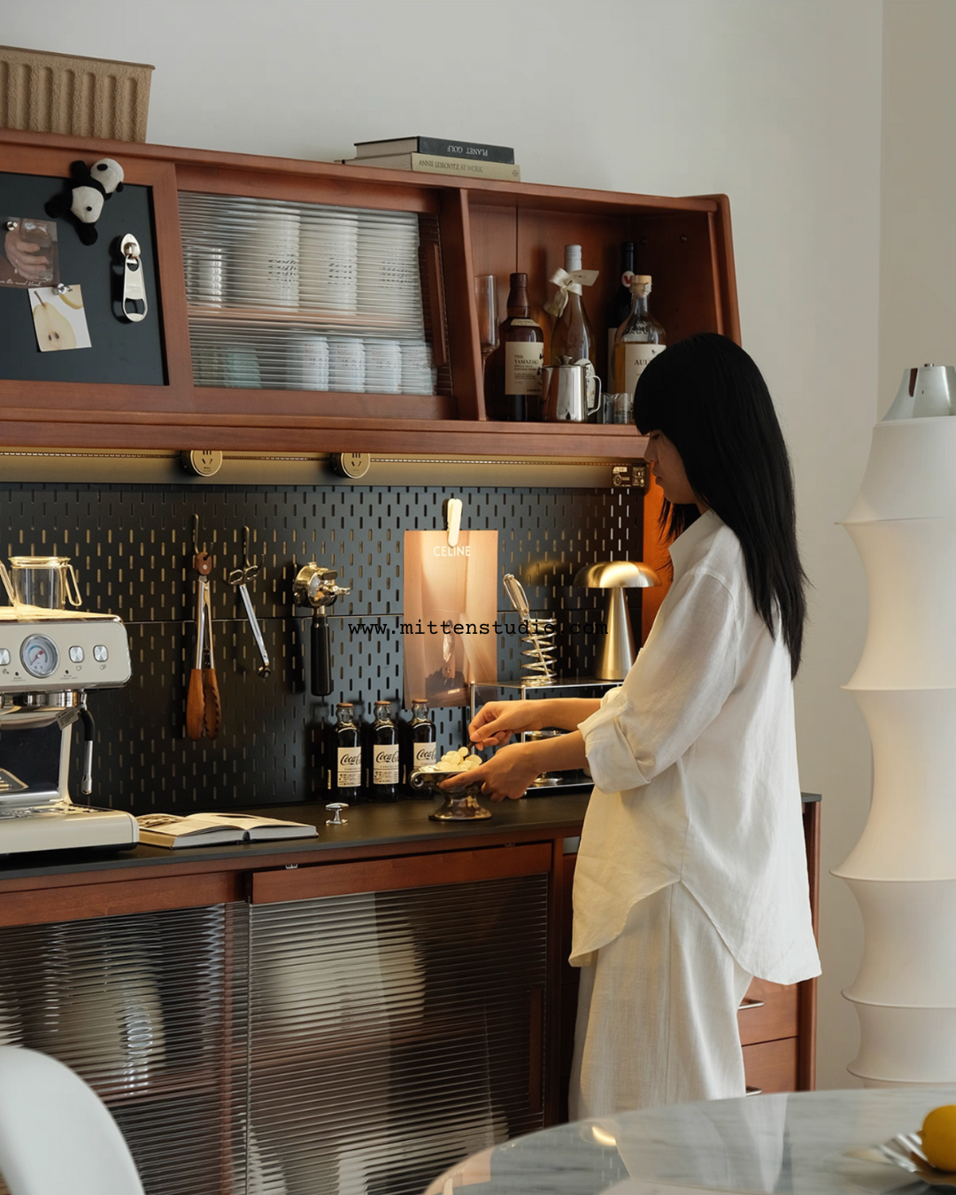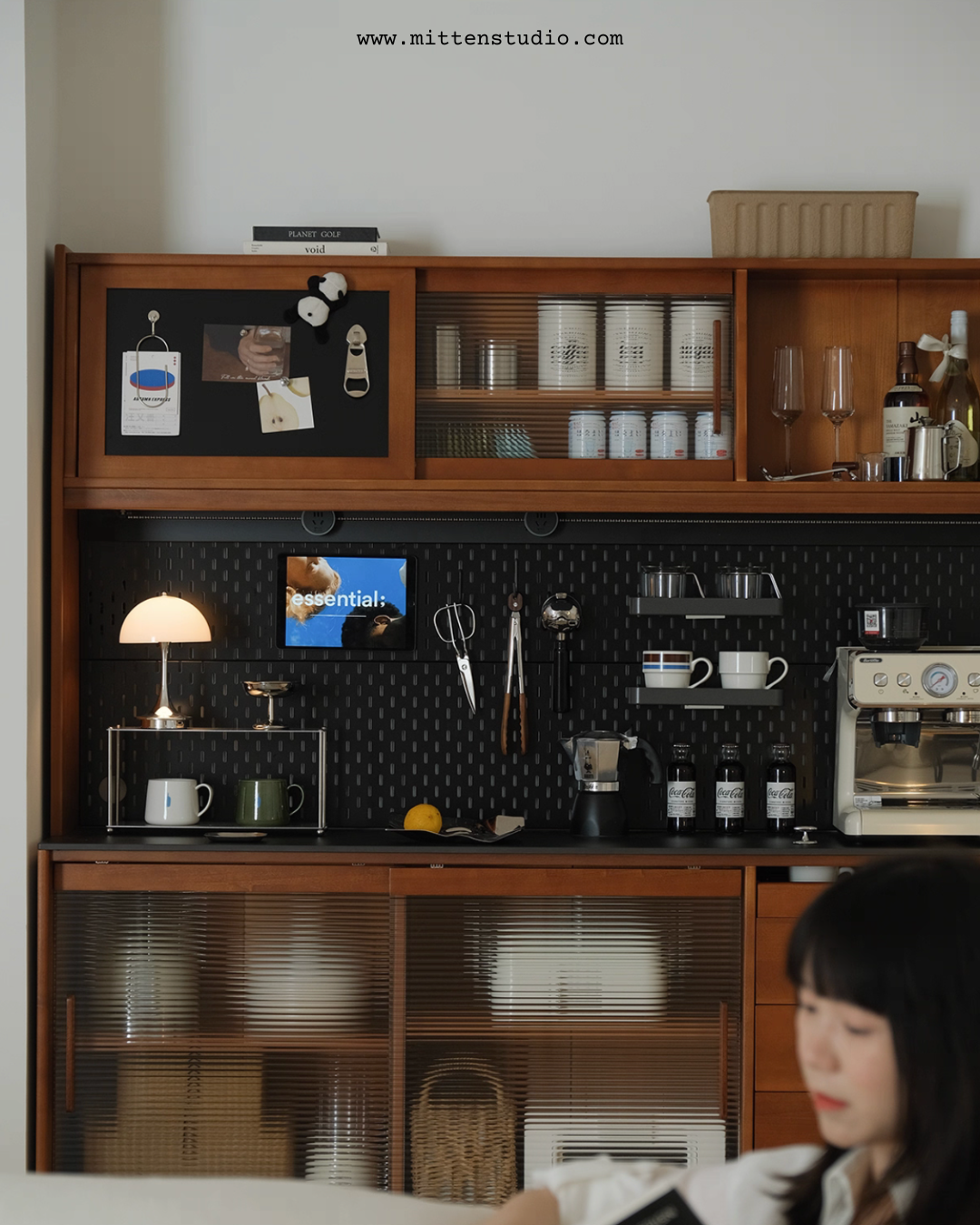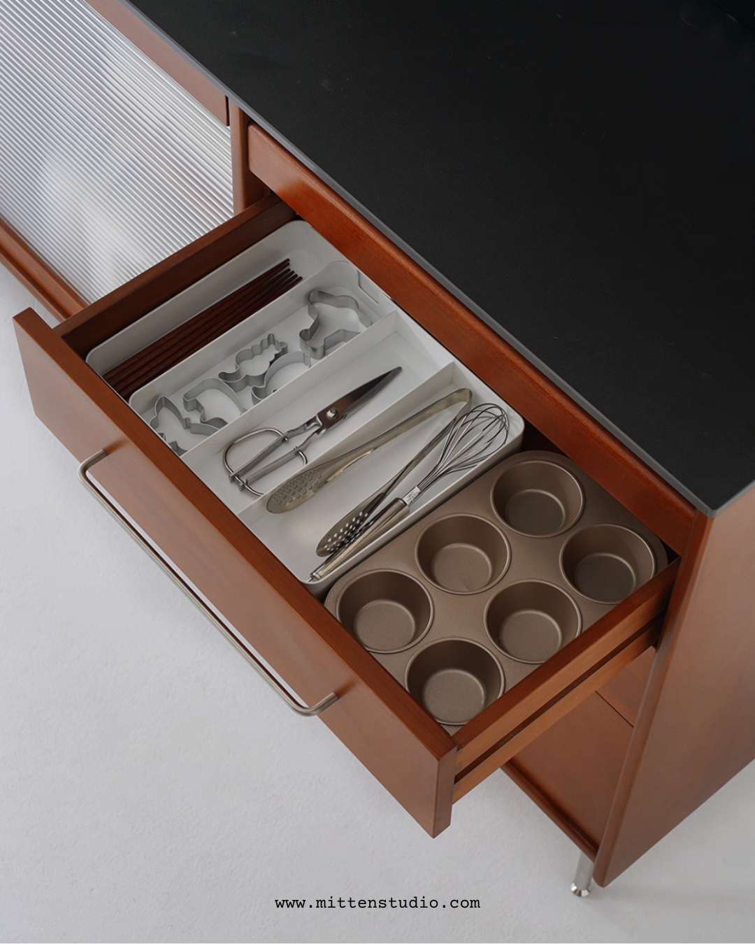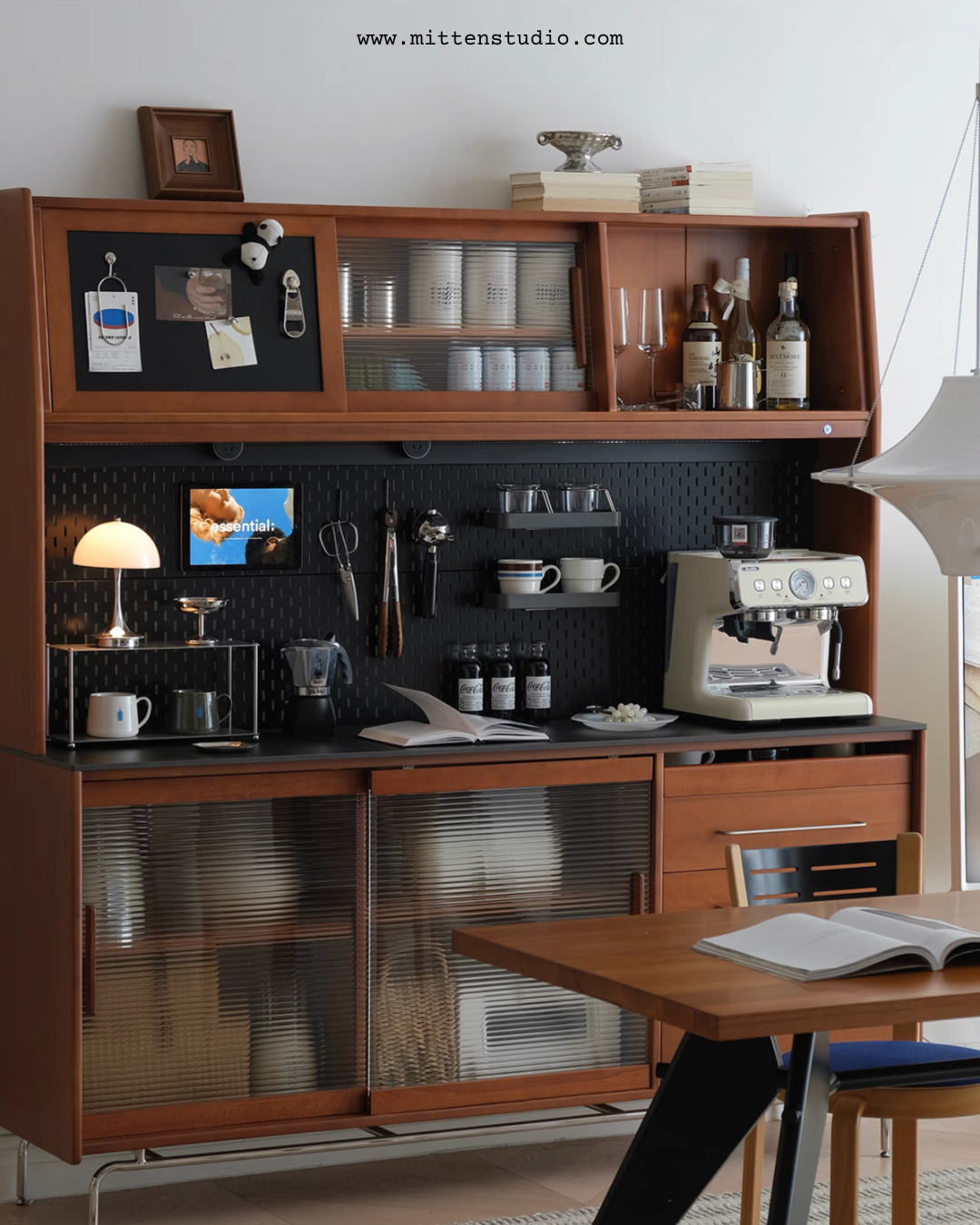 ตัวตู้ทำจากไม้แท้ มีชุดมือจับ ราวแขวนและขาสแตนเลสคุณภาพสูงเสริมสอดรับกับไม้โทนสีเข้มเป็นอย่างดี ความสูงของตู้และระดับของเคาน์เตอร์ช่วยให้ผู้ใช้งานทำงานต่างๆบนเคาน์เตอร์ได้อย่างไม่เมื่อยล้า นอกจากนี้ยังมีแผง Multifuntion board และชุดตู้เก็บของที่แบ่งแยกพื้นที่เก็บของไว้เป็นอย่างดี ผู้ใช้สามารถเก็บจัดระเบียบสายไฟได้อย่างง่ายดายด้วยช่องลอดสายทั้งช่วงกลางและด้านล่างของตู้