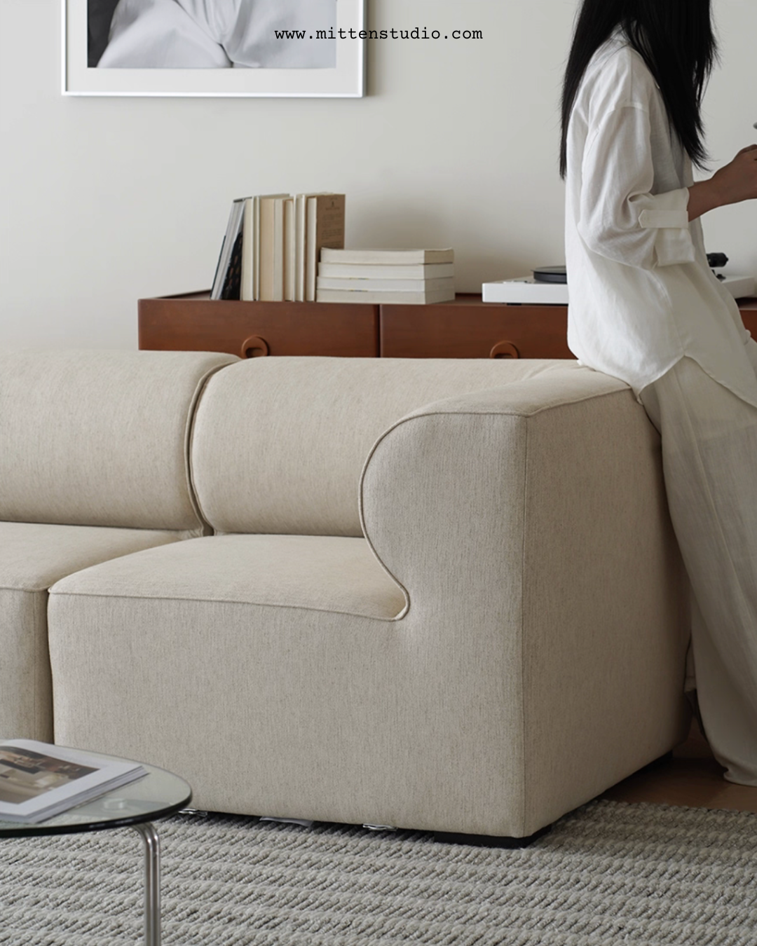 Eave Modular Sofa ความเรียบง่ายที่เต็มไปด้วยแรงบันดาลใจจากสถาปัตยกรรม โซฟาดีไซน์พิเศษที่ได้รับแรงบันดาลใจจาก “ชายคา” – ส่วนปลายของหลังคาที่ทอดตัวออกมาอย่างอิสระ สะท้อนผ่านเส้นโค้งอ่อนช้อยของพนักพิงและที่วางแขน ที่ให้ทั้งความรู้สึกอบอุ่นและการรองรับอย่างมีประสิทธิภาพ