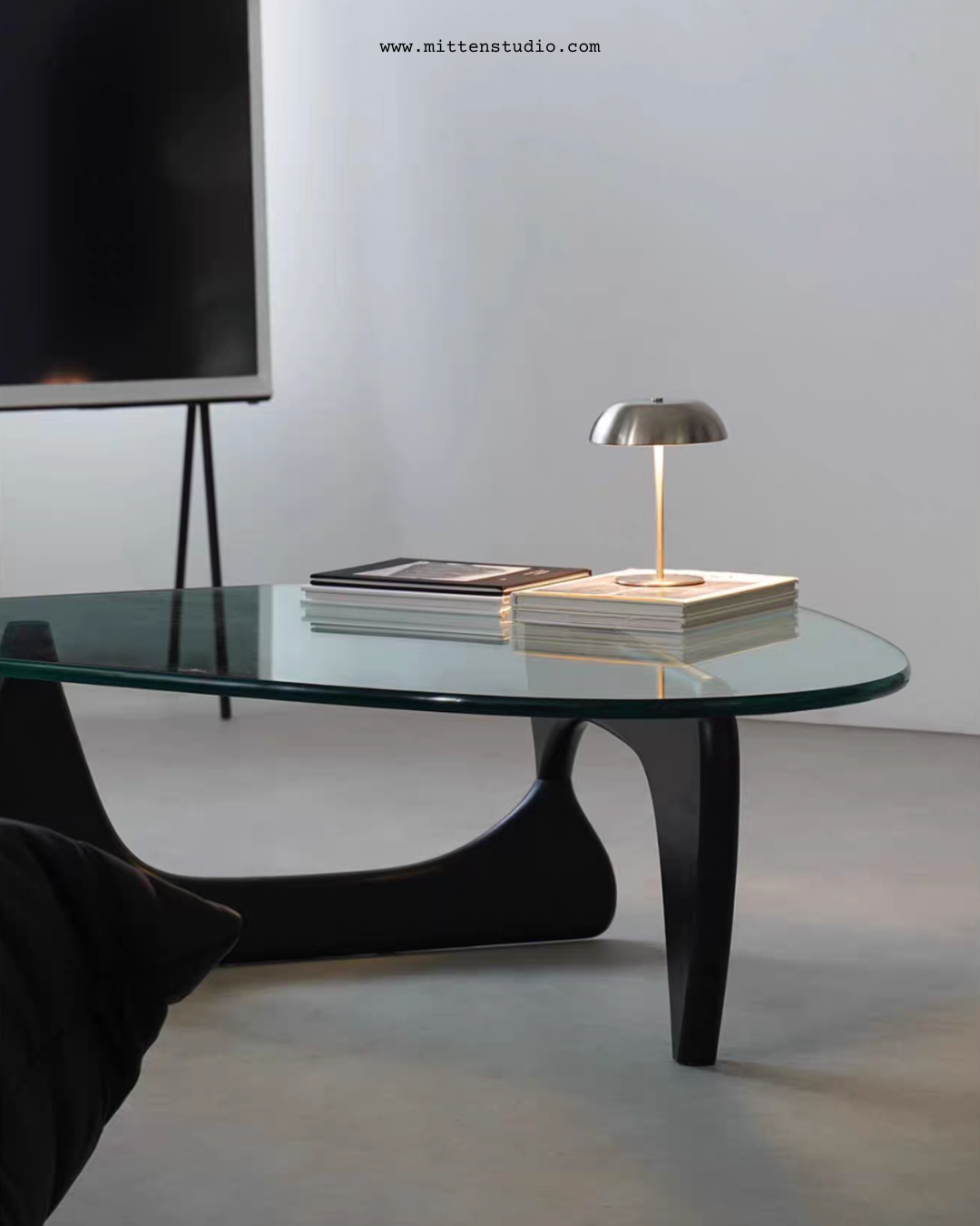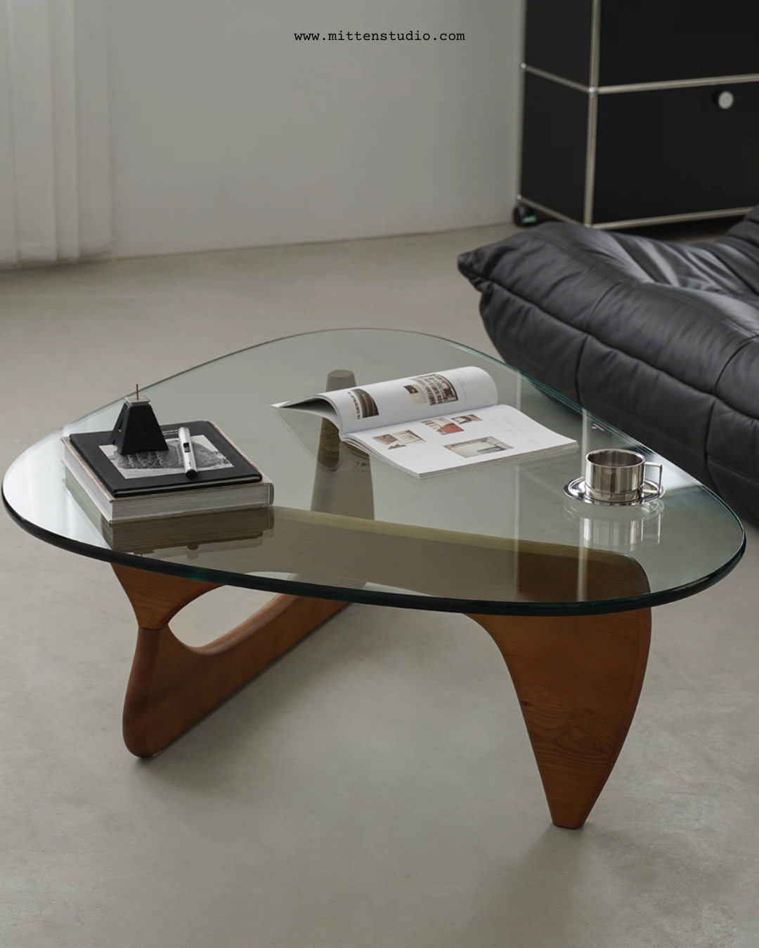 Noguchi Coffee Table โต๊ะกลางโซฟา ที่ให้ความ timeless กับห้องนั่งเล่น รูปทรงสวยแปลกตา ที่ใส่ความเป็นศิลปะกับการใช้งานได้อย่างลงตัว ตัวโต๊ะออกแบบมาเป็นทรงสามเหลี่ยม Freefrom ด้านบนเป็นกระจก tempered glass ที่มีความหนามากถึง 19mm มีน้ำหนักสูง วางบนขาโต๊ะที่ผลิตจากไม้Ash มีจุดรับหน้ากระจก 3 จุดใหญ่ๆ ทำให้น้ำหนักกระจกถ่ายน้ำหนักออกไปรอบๆ จึงไม่ต้องกังวลเรื่องความปลอดภัย