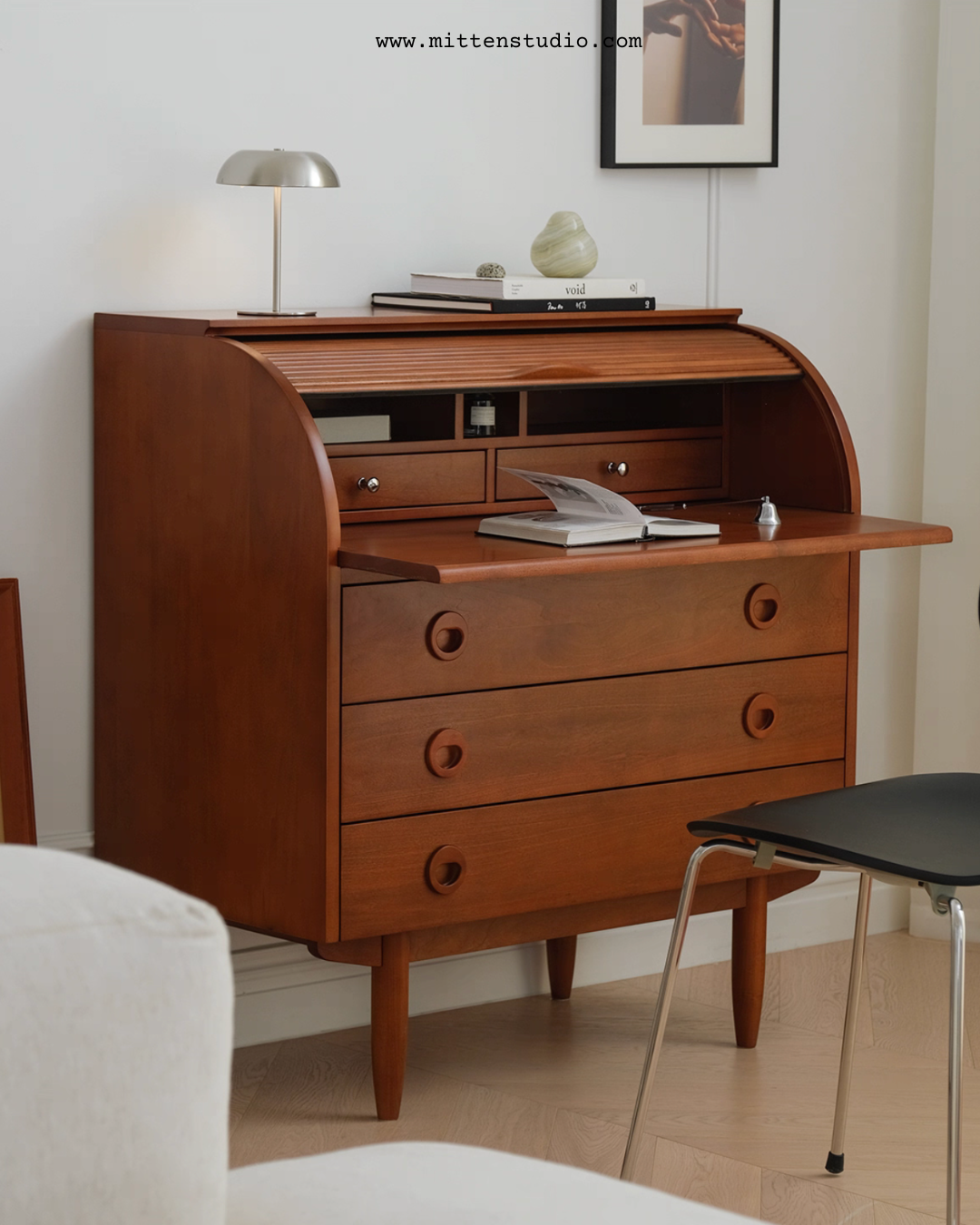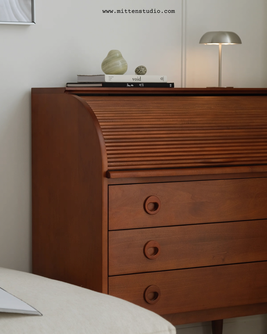 Richard Multi-function Cabinet ตู้อเนกประสงค์ดีไซน์ฟังก์ชัน มาพร้อมโต๊ะอ่านหนังสือหรือโต๊ะแต่งหน้าในตัว เหมาะสำหรับสร้างมุมโปรดในห้องของคุณอย่างลงตัว โดดเด่นด้วยดีไซน์หน้าบานลูกฟูกโค้งร่วมสมัย ภายในซ่อนลิ้นชักและชั้นวางของอย่างเป็นระเบียบ พร้อมฟังก์ชันเลื่อนออกเป็นที่นั่งทำงาน ความยาวใช้งานสูงสุดถึง 45 ซม. เพิ่มความจุด้วยลิ้นชักขนาดใหญ่อีก 3 ชั้น ตอบโจทย์ทั้งความสวยงามและการใช้งานในชิ้นเดียว